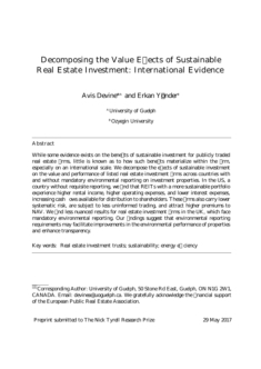 Decomposing the Value Effects of Sustainable Real Estate Investment - International Evidence 2017 Nick Tyrrell Research Prize